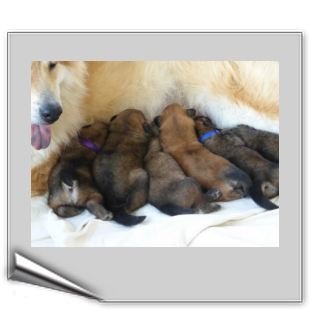Sie geht nun zu ihrer Zeit raus, liegt kurz im Garten und weiß instinktiv, wann die Kleinen wieder Hunger bekommen - da ist sie dann auch sofort wieder da, legt sich in die Wurfkiste, leckt die Welpen sauber und lässt sie saugen. Ein total harmonisches Bild.
