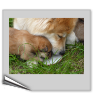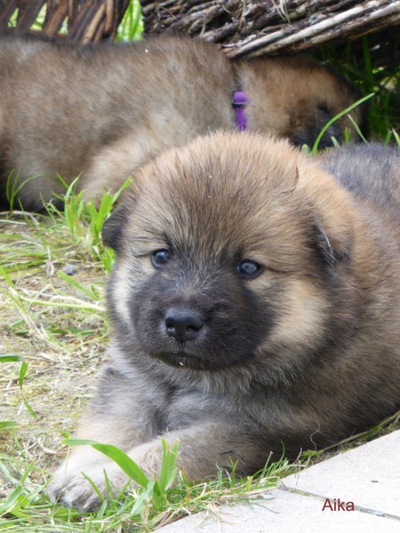 Heute waren Angelika und Bernd zum Welpenbesuch, sie wollten endlich ihre Aika im Original sehen. Wie die bisherigen Besuche auch ließ Ansi alles ganz relaxed über sich ergehen, meldete am Anfang den Besuch und schaute kurz, dass niemand ihre Welpen mitnahm und ließ uns dann in Ruhe. Nur am Abend, als Angelika kurz mit Aika auf dem Arm einige Schritte in den Garten wagte, kam Ansi aus dem Hintergrund und lief mit - sie wollte doch sehen, was mit ihrer Kleinen passierte!