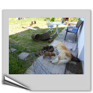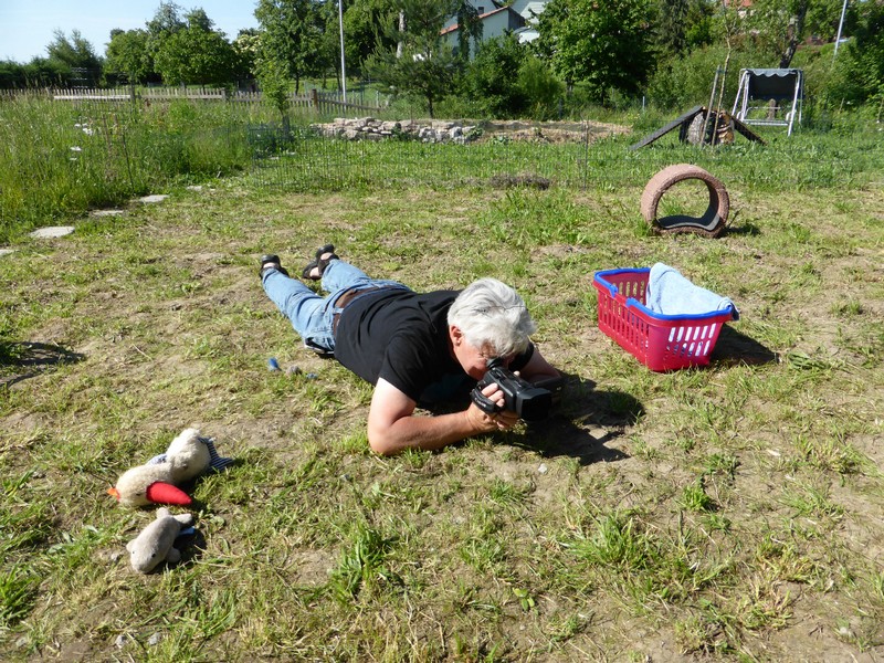 Heute hat die Rasselbande zum ersten Mal einen Ausflug in den Garten gemacht. Ansi musste natürlich alles genau beobachten, legte sich dann sofort hin und - damit alles ganz normal erschien - ließ alle trinken. So nach und nach erkundeten die Zwerge dann die nächste Umgebung um die Mama herum, nur der kleine Fuchs wagte sich schon etwas weiter weg.