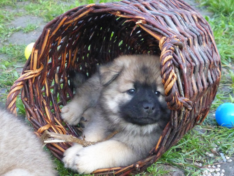 Inzwischen haben die Welpen die 7. Lebenwoche vollendet und jetzt fordern sie immer mehr: mehr Nahrung, mehr Zeit, mehr Spielzeug, mehr Freiheit. Nachdem sie ja letzte Woche gemeinsam den kleinen Zaun zum See schon umgelegt hatten und ich auf die Schnelle einen höheren Zaun ziehen musste, versuchen sie jetzt, an allen möglichen Stellen eventuell aus ihrer Umfriedung herauszukommen.