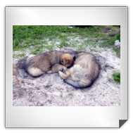 Bei der Hitze in den jetzigen Tagen liegen die Kleinen zumeist tagsüber im Flur und an schattigen Stellen und rühren sich kaum vom Fleck. Erst abends werden sie wieder munter.