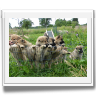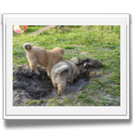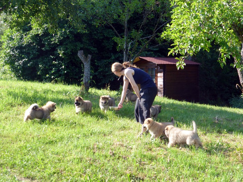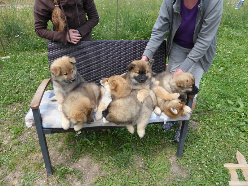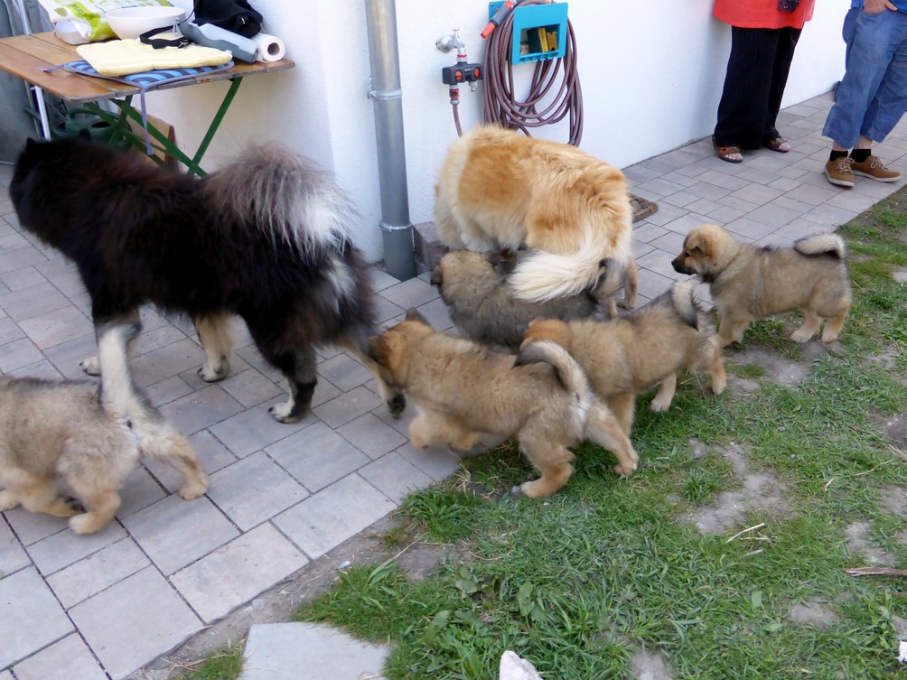 Als zu Mittag Deckrüde Balu wieder in den Garten kam, wurde er von Ariko so verbellt, dass er zuerst gar nicht wusste, wie ihm geschah. Aber innerhalb kurzer Zeit hatten die ganzen Welpen Zutrauen zu ihm gefasst und er wurde die ganze Zeit belagert.