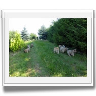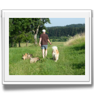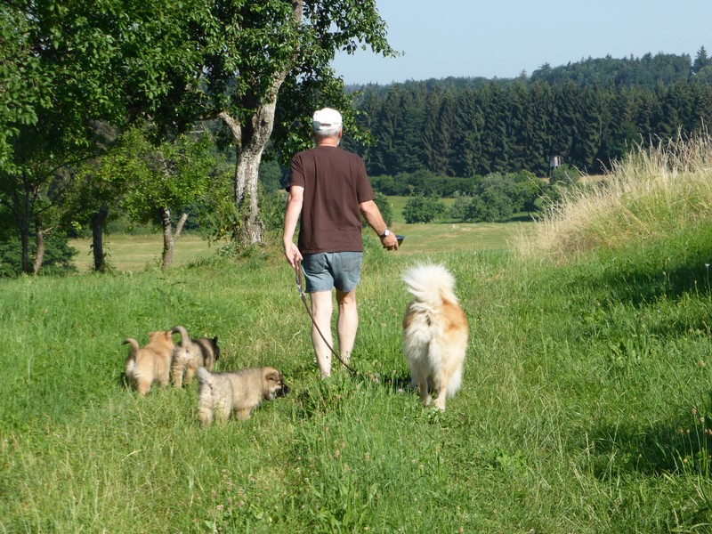Kurz nach dem Mittagessen kamen die Welpenkäufer aus Österreich und wir konnten nochmals gemeinsam eine kleine Runde auf die Wiese und dann an unseren Teich einlegen. Heute hatte Asco allerdings keine Lust zu Schwimmen.