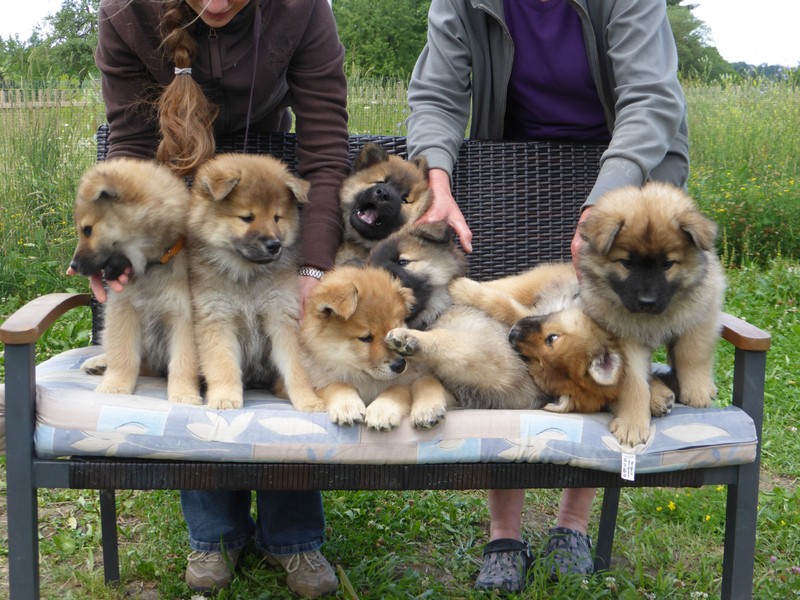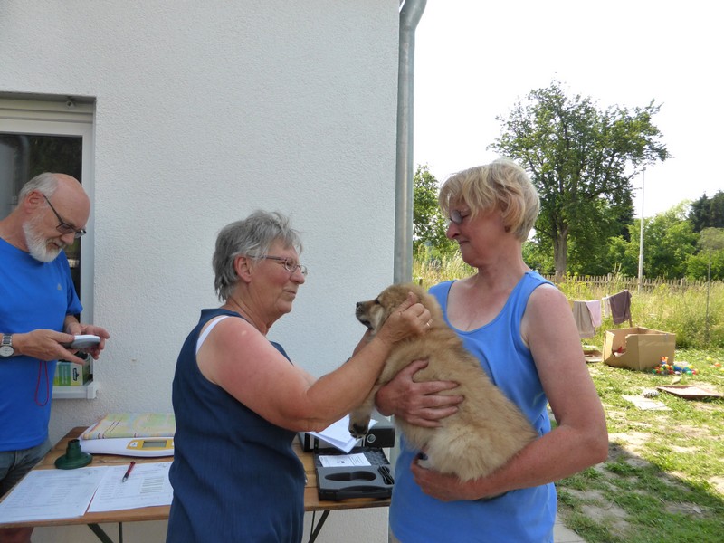 Gestern, Montag, 6. Juli, war der große Tag beim Tierarzt zum Impfen und Chippen. Unsere Zwerge verhielten sich - wie es sich für Eurasier gehört - mustergültig! Niemand hat gezappelt, keiner hat gezetert, alle waren ruhig und gar nicht sehr aufgeregt, obwohl man doch gegen die längere Autofahrt bei 30 °C etwas protestieren musste. Alle Welpen sind gesund und in sehr guter Verfassung, die Tierärztin war sehr zufrieden.