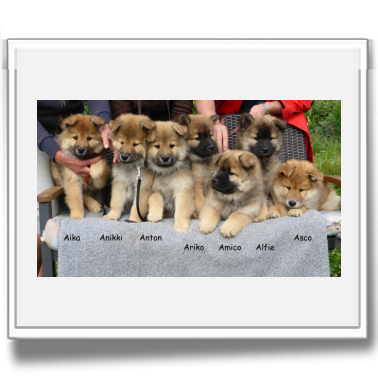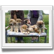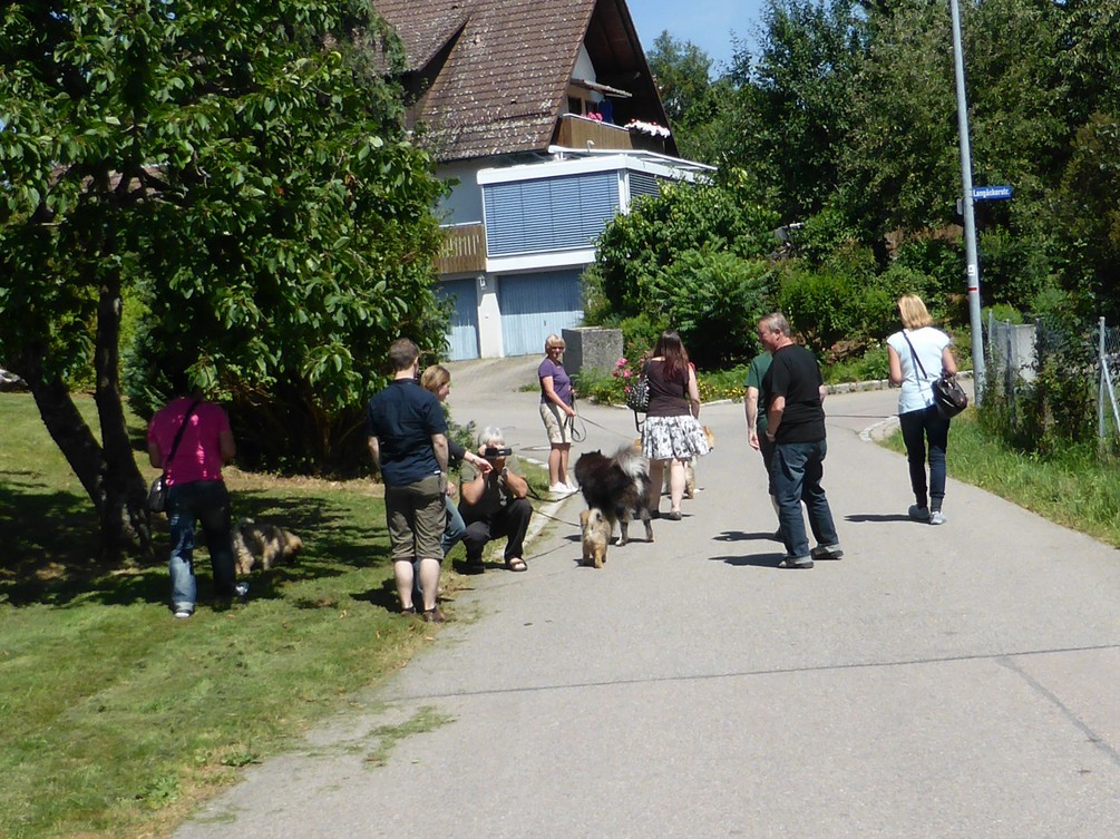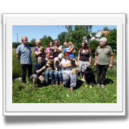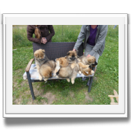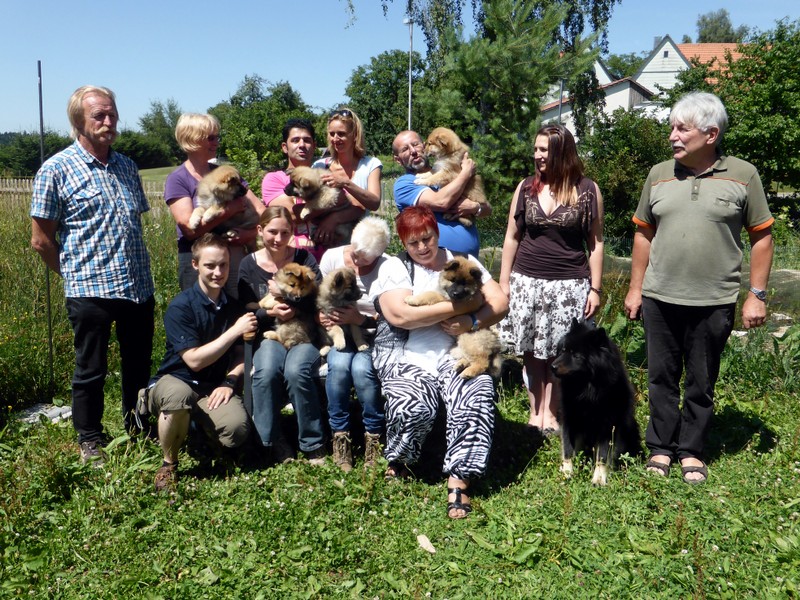 Vor und nach dem gemeinsamen Mittagessen konnte die Bürokratie abgehandelt werden, dann machten wir mit den Welpen noch einen kurzen Spaziergang im Dorf und zum Schluss entstand das "Familienbild".