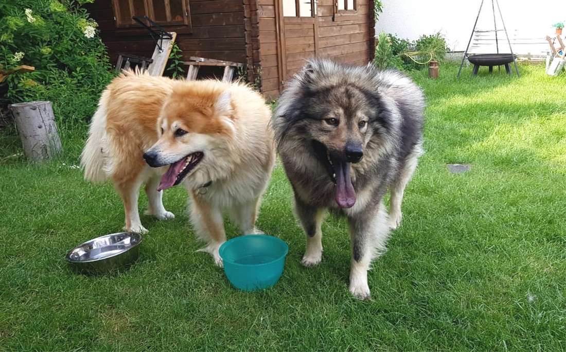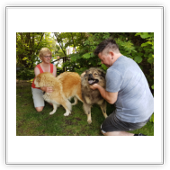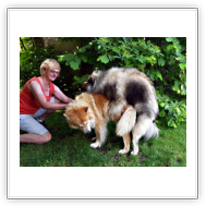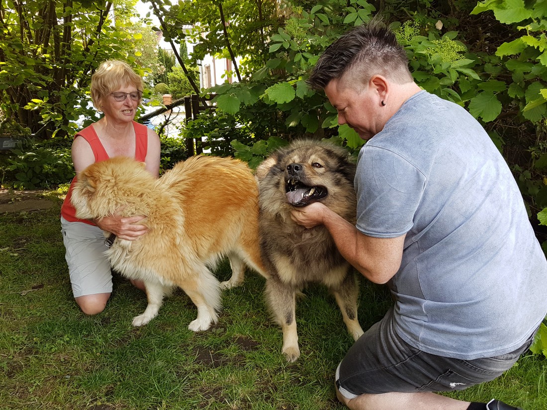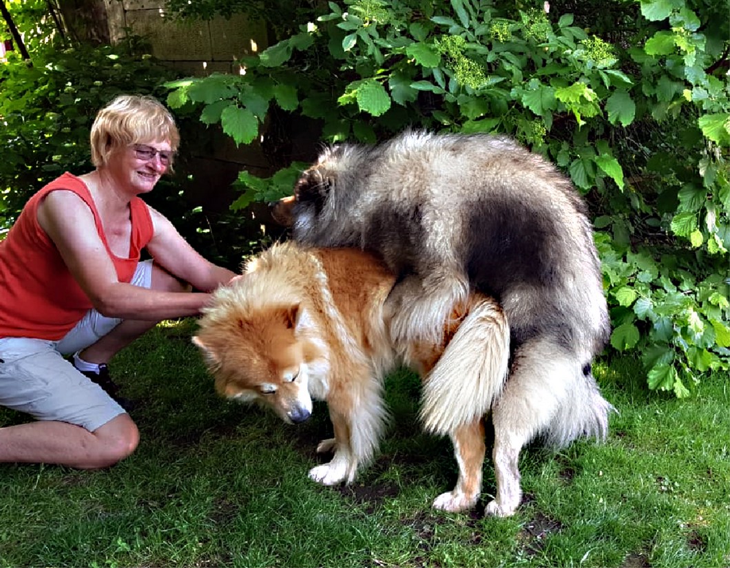 Aus vielen verschiedenen Vorschlägen der Zuchtleitung wählten wir diesmal "Jordi-Prinz von den Wuppertatzen" als Deckrüden aus, er war uns bekannt und er wohnte sinnvollerweise in unserer Nähe. Die Läufigkeit von Ansi begann wieder zum fast vorberechneten Termin und so konnten wir am 21. Mai am Vormittag zu Jordi-Prinz fahren. Er war natürlich ganz aufgeregt und beschnupperte Ansi von allen Seiten, wollte auch aufreiten, war aber zu nervös. Ansi tanzte ein paar Mal mit ihm herum, aber nach einer halben Stunde - Jordi war schon ganz außer Atem - ließen wir die zwei in Ruhe.