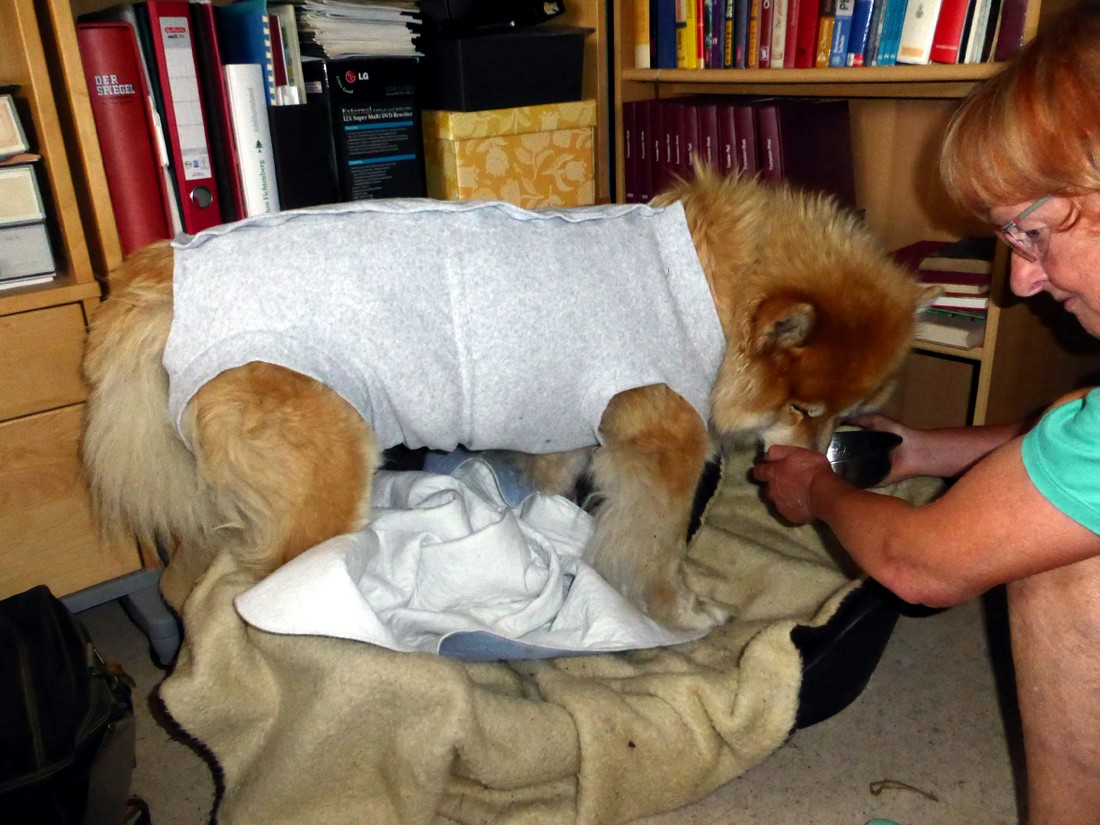Am Nachmittag haben wir dann Ansi wieder geholt: Laut Tierarzt war der Welpe schon einige Zeit tot, an was er gestorben ist, ließ sich nicht nachweisen. Er war normal entwickelt. Der Arzt war etwas sauer, dass wir nicht schon früher gekommen waren, trotz unseres Hinweises auf den Ultraschall, der in der Tierarztpraxis am Dienstag gemacht worden war.
