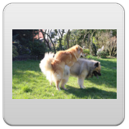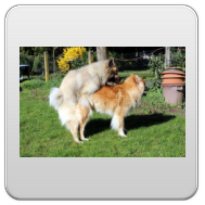 Ansis Läufigkeit begann dieses Mal schon zwei Tage nach der Läufigkeit von Anikki - als ob sie es eilig hätte - am 24. März. Nach vielem Hin und Her wegen Deckrüden-Suchen bekamen wir dann doch noch die Verpaarungsliste zugeschickt und machten uns nach kurzer Voranmeldung am 6. April auf den Weg zu Baldo vom Götterfunken. Es war der 14. Tag der Läufigkeit, wir waren uns nicht sicher, ob Ansi den Rüden schon heranlassen würde. Allerdings hatte sie auch schon ein paar Tage vorher den Jungrüden der Nachbarschaft so angefiept, dass wir der Meinung waren, dieses Mal würde es etwas schneller gehen bei ihr. Und wie vorhergesehen - wir kamen kurz nach 15 Uhr in Darmstadt an, Baldo und Ansi rannten ein paar Runden durch den Garten, Baldo stieg zwei-, dreimal auf und schon war die Sache perfekt! Die beiden hingen ziemlich genau 15 Minuten, dann brachten wir Ansi ins Auto zum Ausruhen - alles in allem hatte es nur 23 Minuten gedauert.